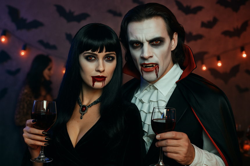 Základ tvoří dlouhý tmavý plášť s vysokým límcem, bledý make-up, kouřové líčení očí a samozřejmě upíří tesáky. Skvělým detailem je kapka falešné krve u koutku úst nebo barevné kontaktní čočky. U dámské varianty můžete přidat dlouhou tmavou nebo rudou paruku, výraznou rtěnku a doplnit vzhled náhrdelníkem či amuletem. U pánské verze se hodí tmavý oblek nebo košile, doplňky jako hůlka nebo pohár s „krví" (naplněný červeným nápojem) celkový look ještě podtrhnou.
