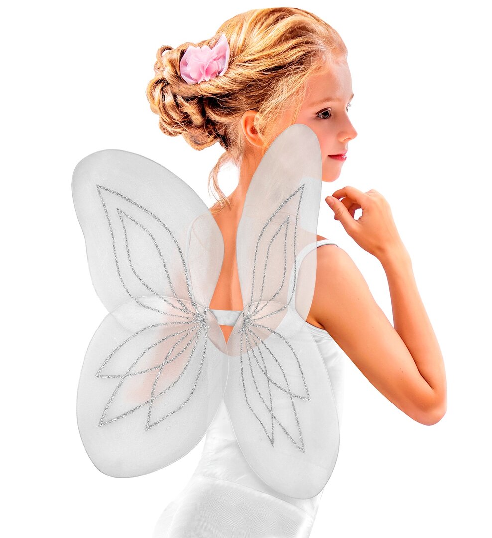 Tato bílá motýlí křídla jsou skvělým doplňkem pro každou malou parádnici na karneval, besídku nebo jen tak na hraní.