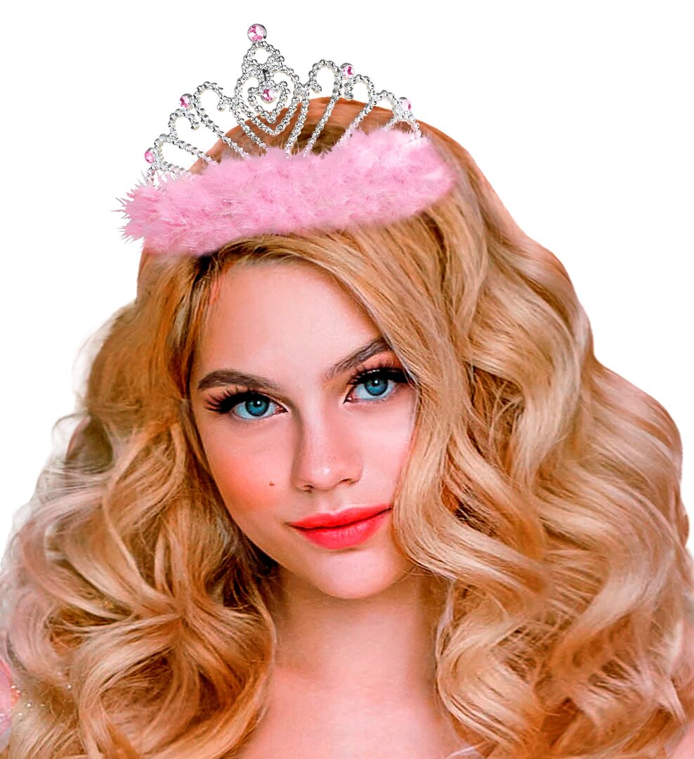 Stříbrná korunka s růžovým chmýřím