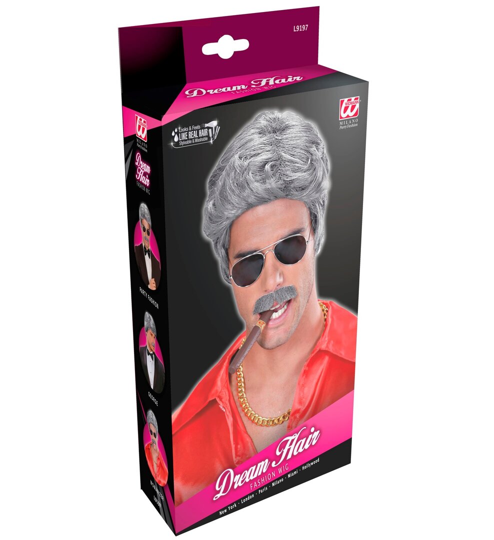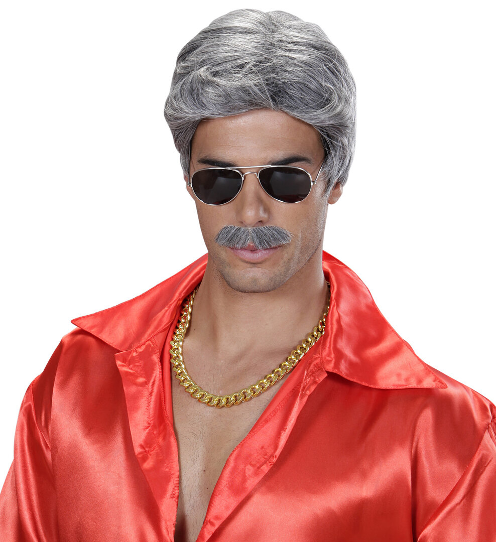 Pánská šedá paruka s knírem Pánská šedá paruka s knírem
