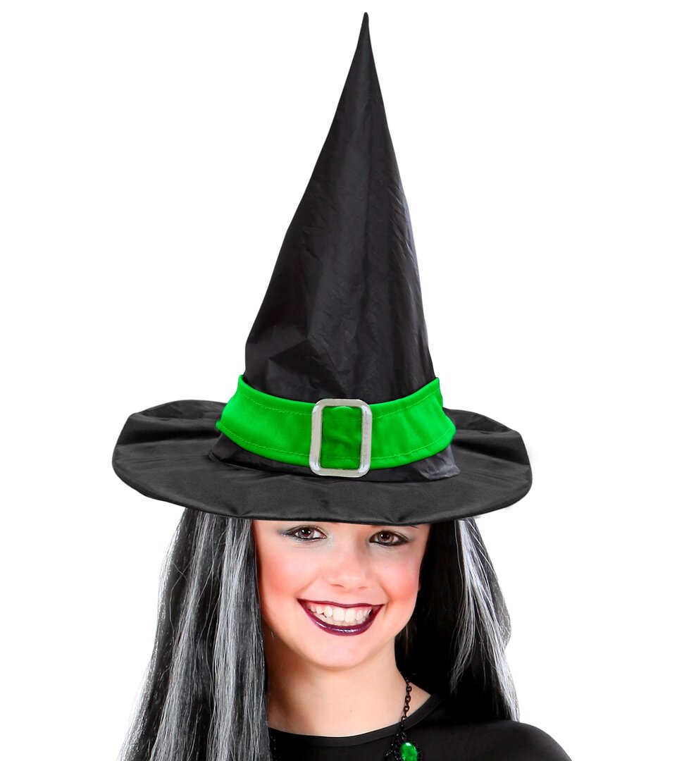 Dívčí čarodějnický klobouk se zelenou stuhou