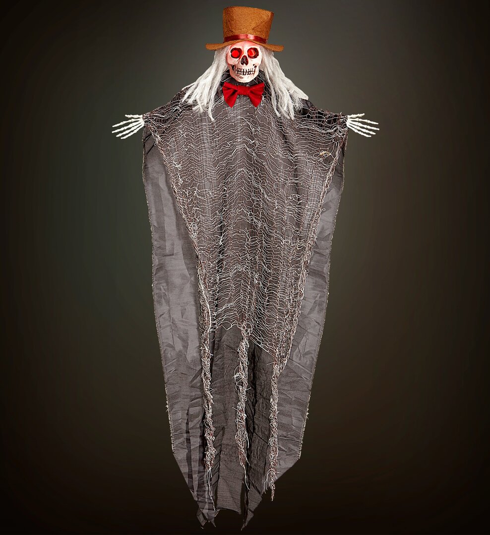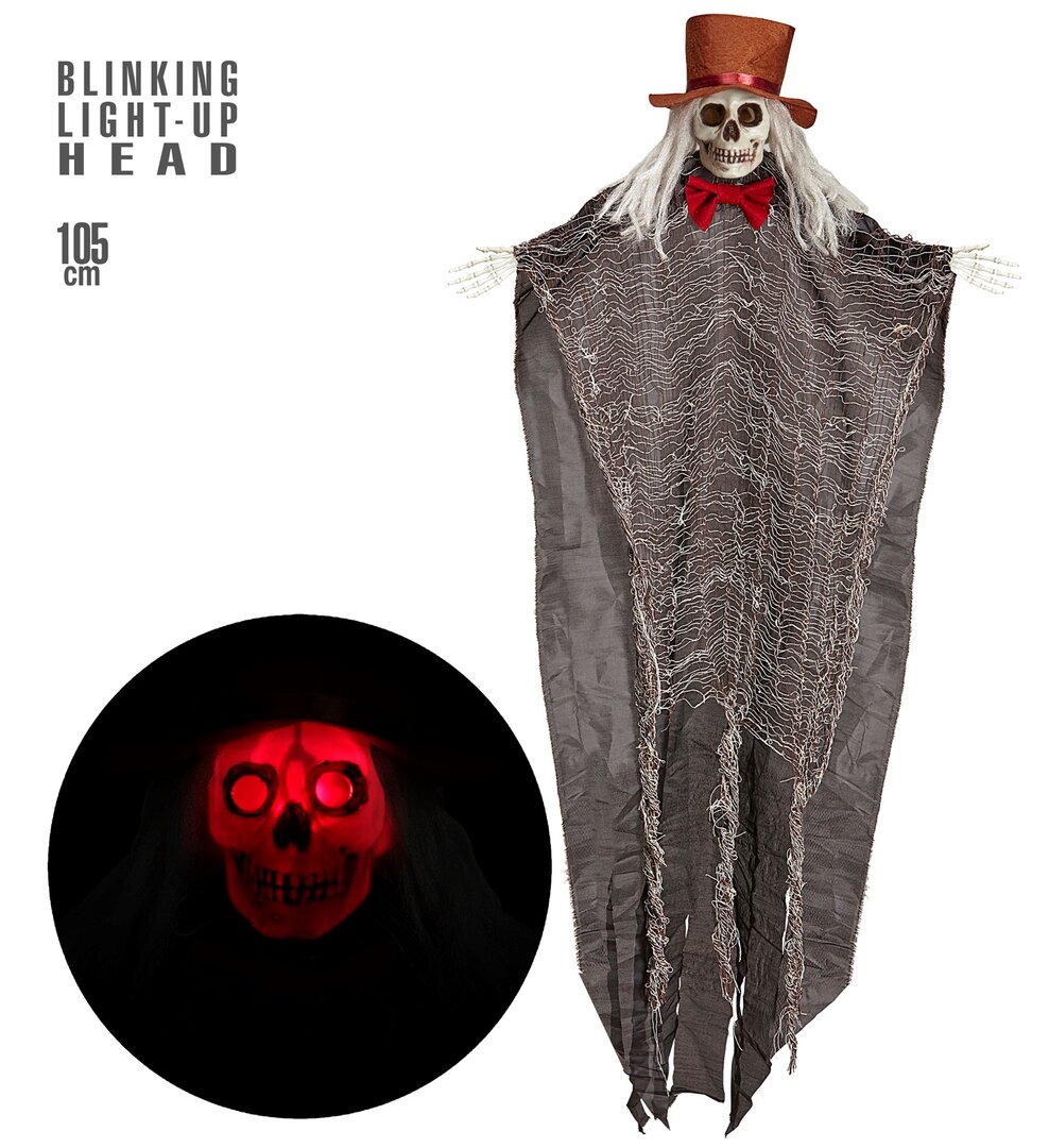 Dekorace kostlivec ženich se svítící hlavou, 105 cm