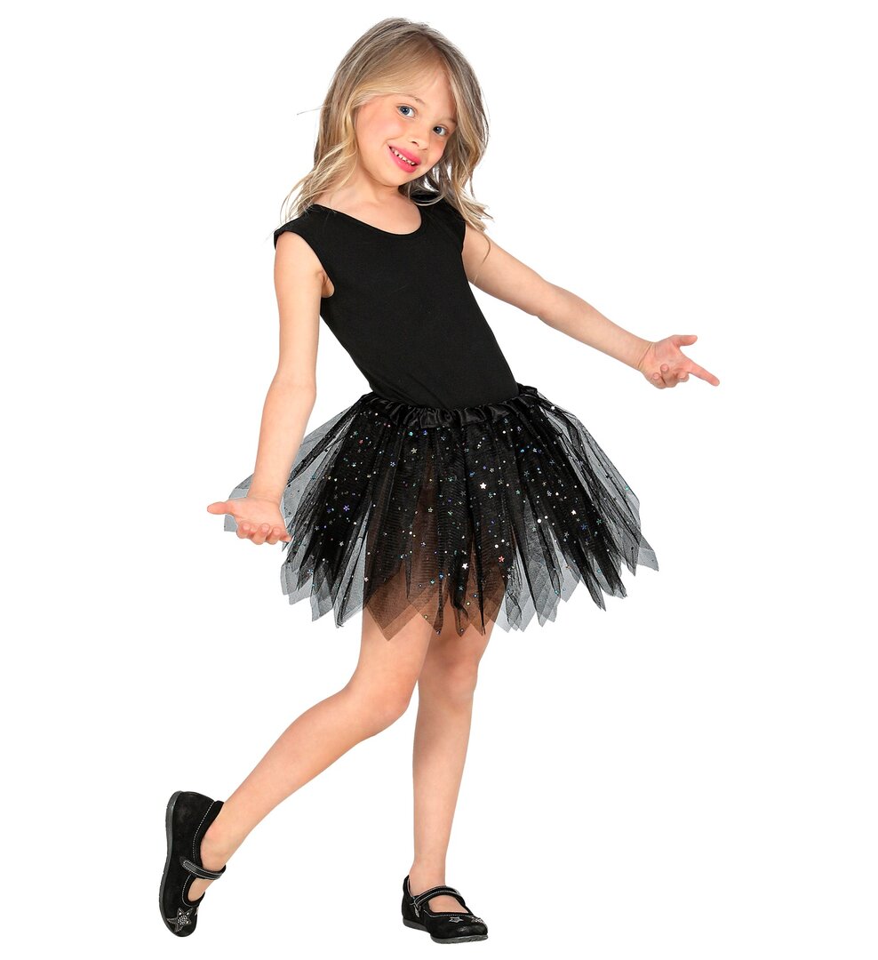 Dívčí černá tutu sukně s třpytkami, 30 cm