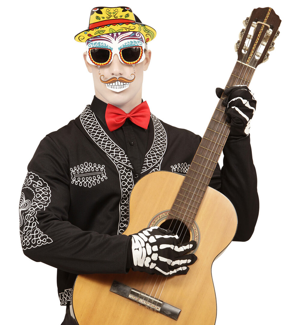Brýle Día de los muertos s knírkem a zuby