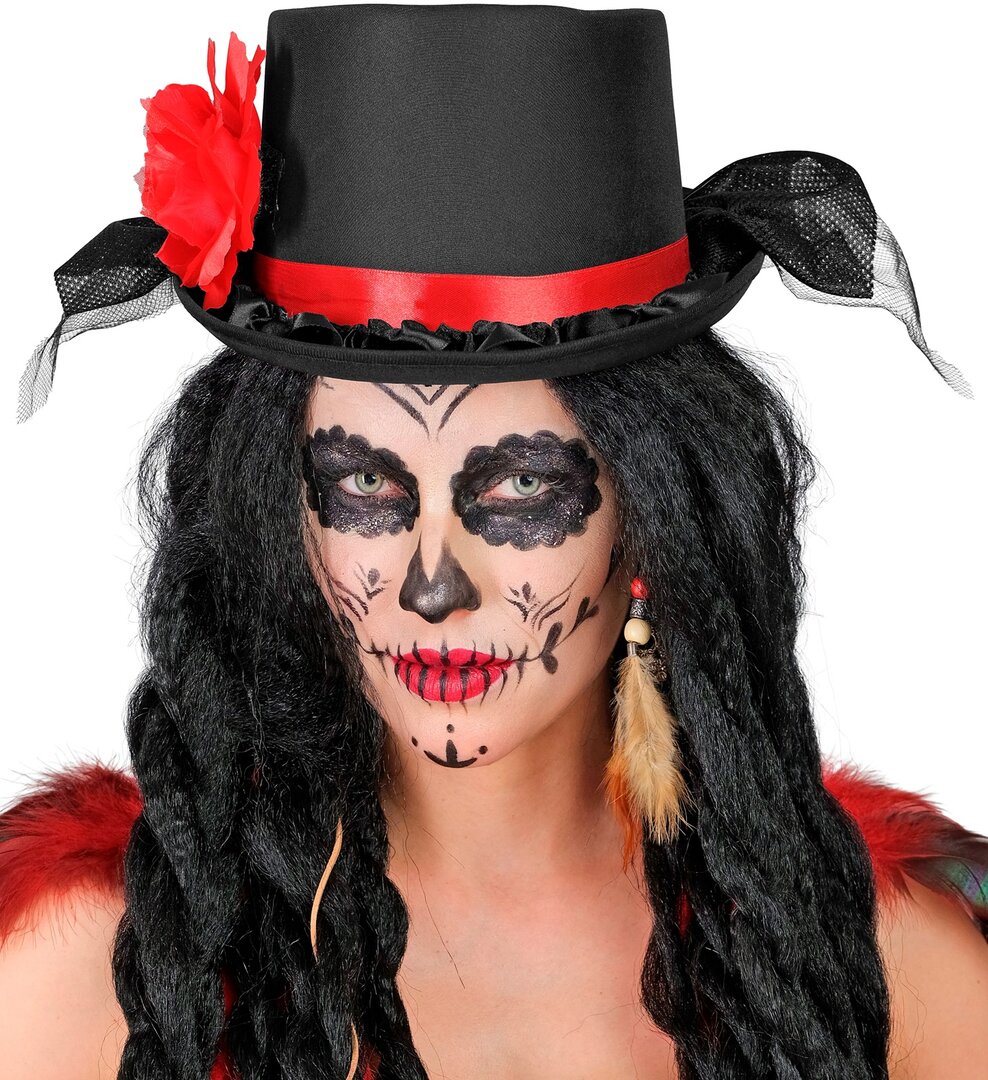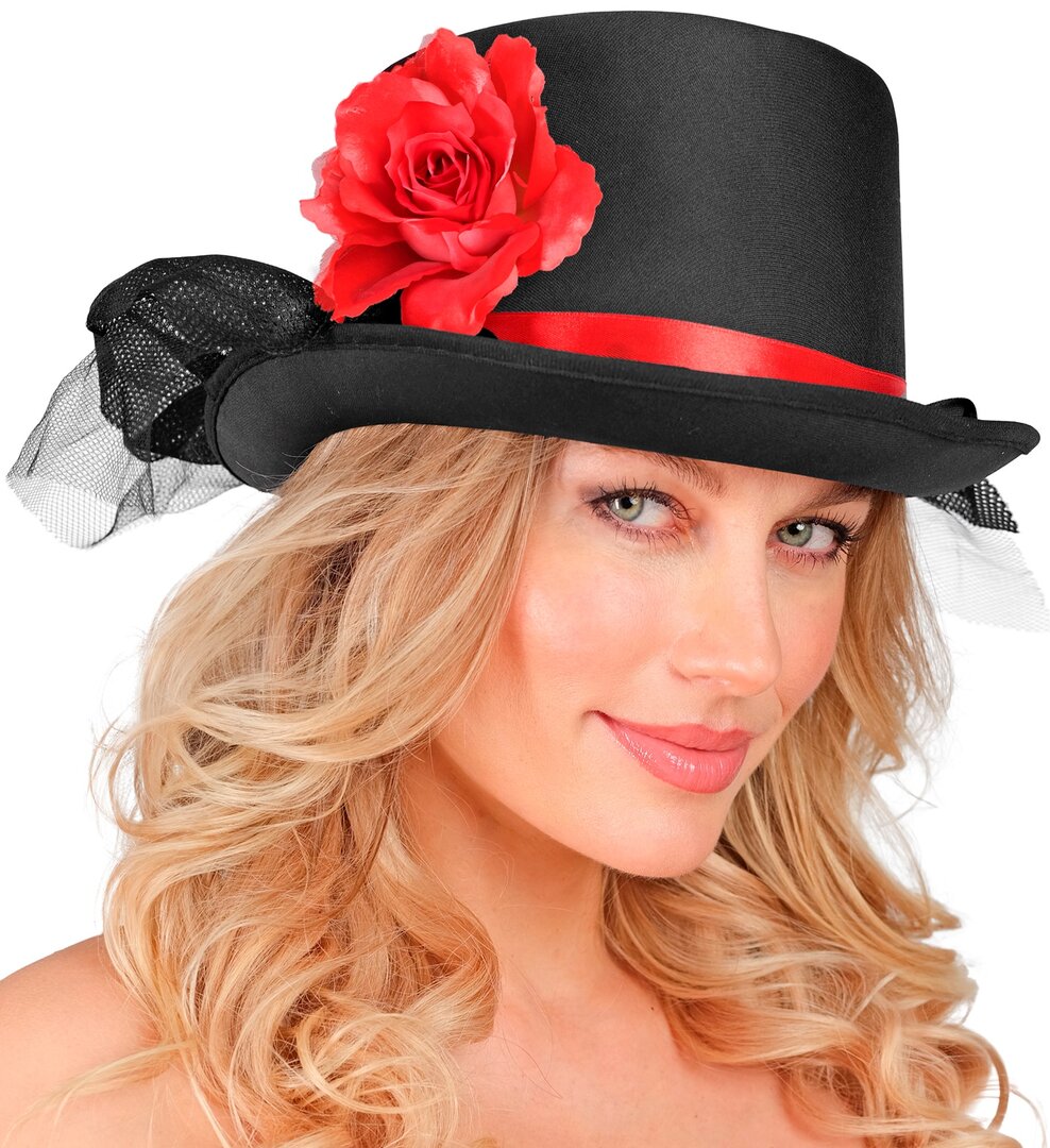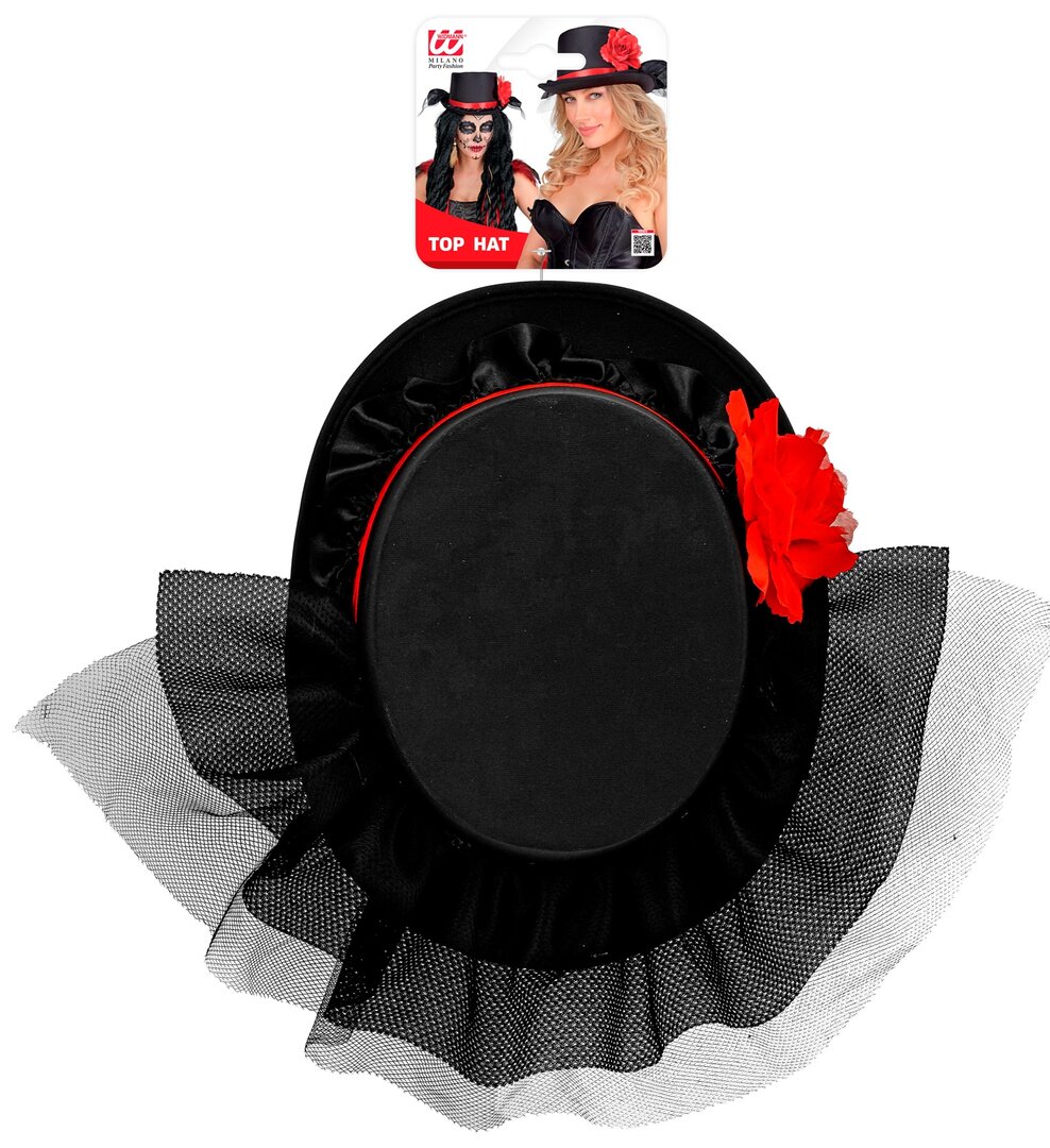 Černý cylindr se závojem a růži Černý cylindr se závojem a růži