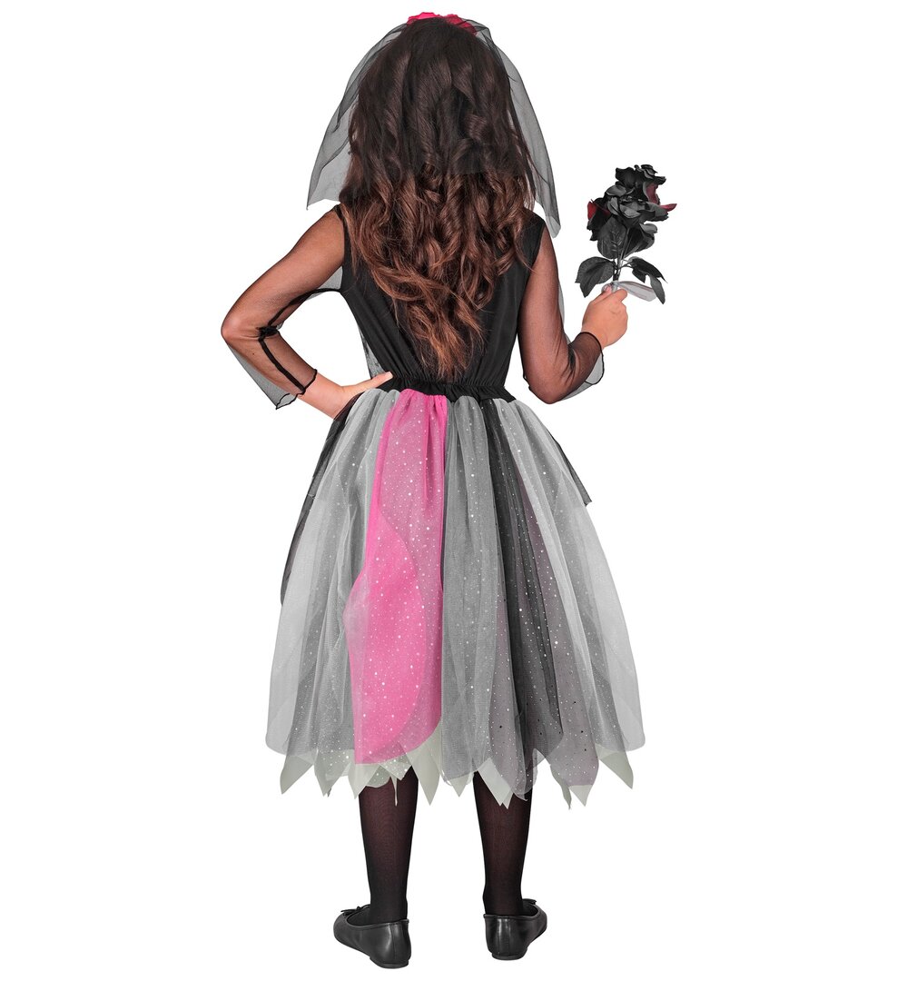 Dívčí kostým kostlivec s růžemi (šaty, čelenka) spojuje temnou atmosféru kostlivce s jemností růží. Ideální pro Halloween nebo tematické kostýmové večírky, tento kostým dodá vaší malé kouzelný a zároveň tajemný vzhled.