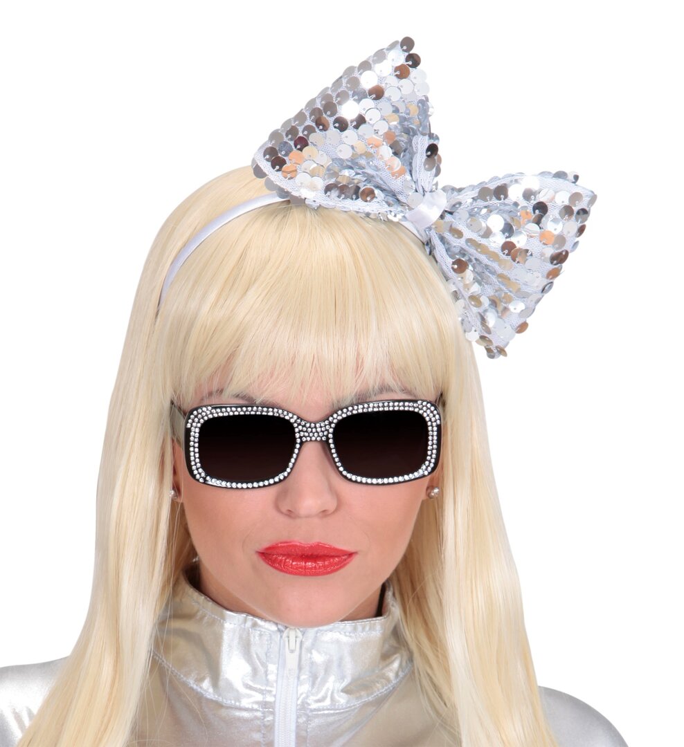 Stříbrná flitrovaná čelenka s mašlí
