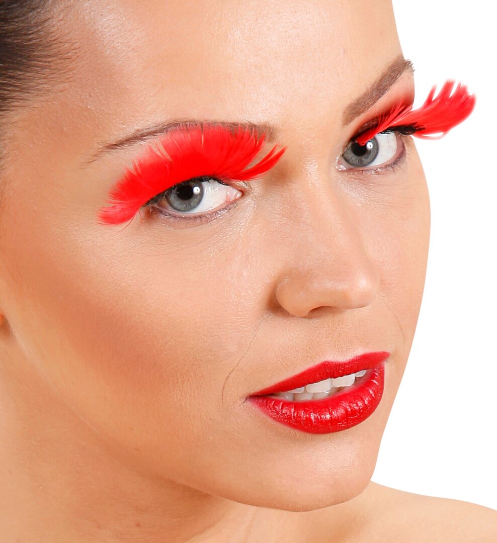 Červené řasy s dlouhým peřím (včetně lepidla)