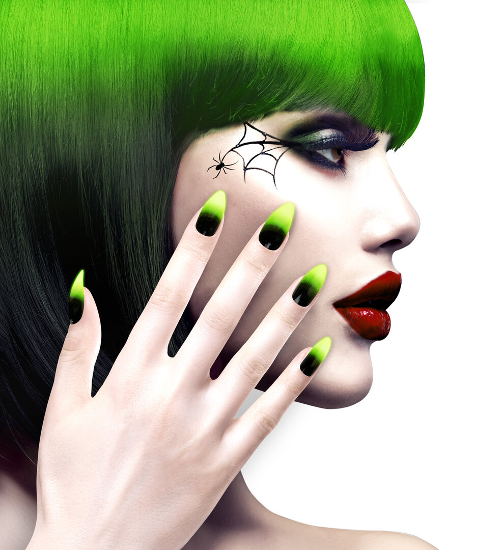 Set 12 samolepících nehtů pro čarodějnice, neonové