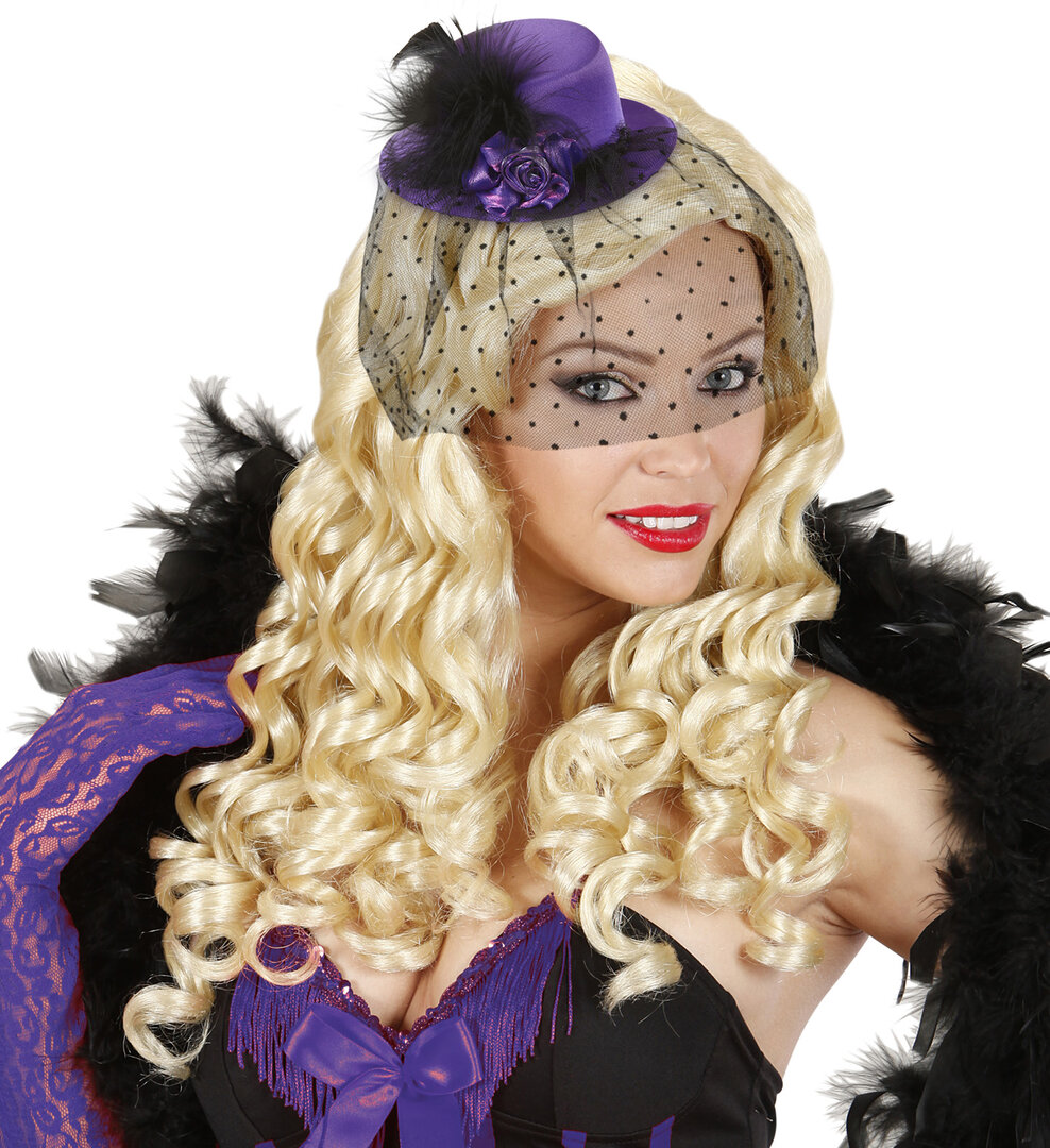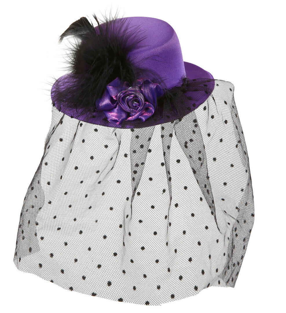 Mini klobouček s tylem a fialovou růží Mini klobouček s tylem a fialovou růží