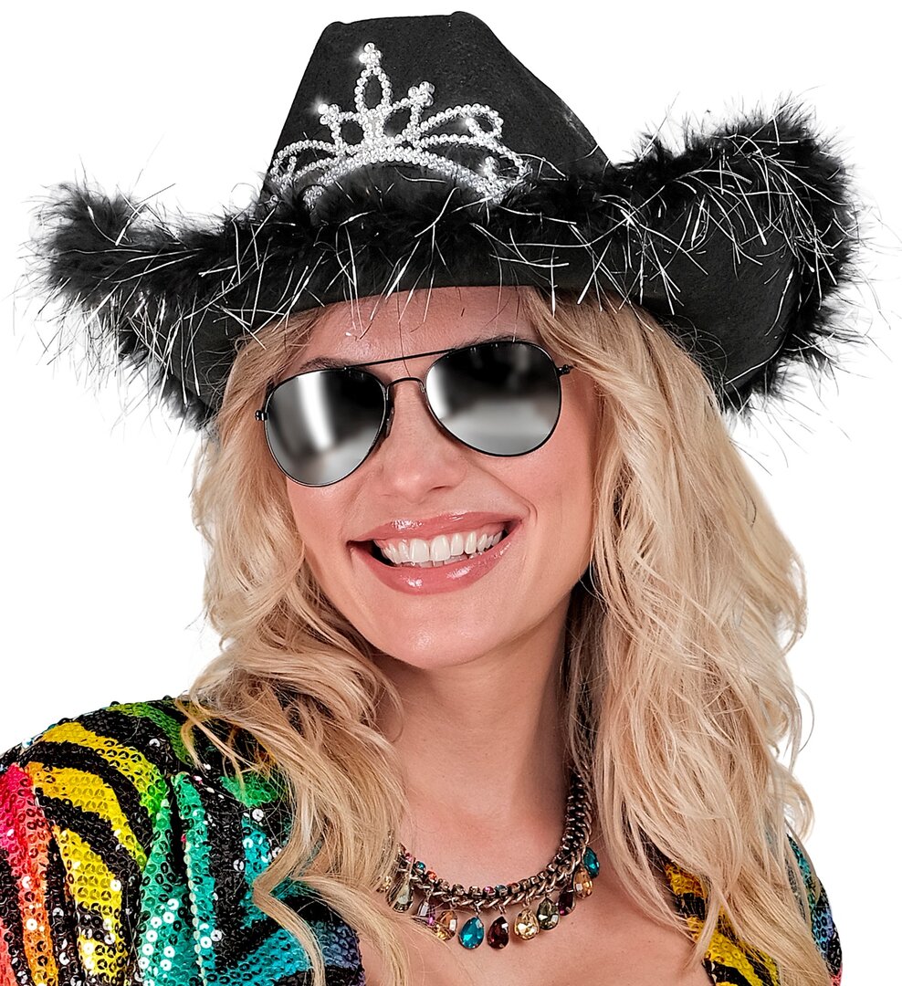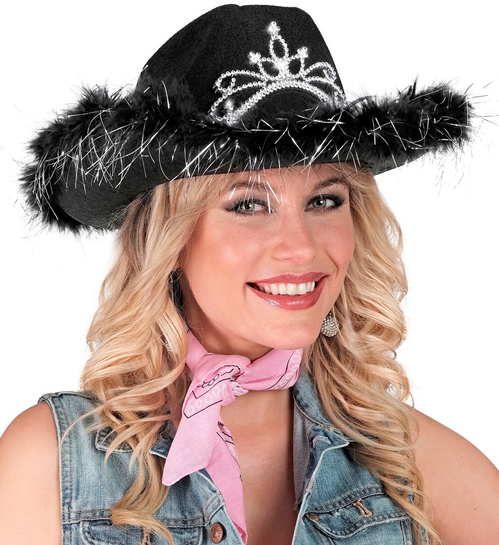 Dámský kovbojský klobouk s diadémem, černý Dámský kovbojský klobouk s diadémem, černý