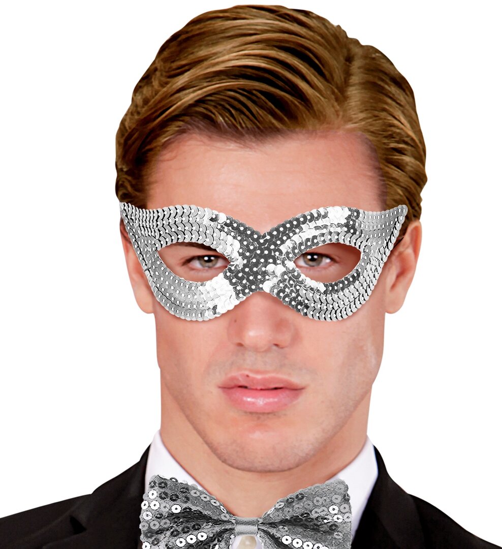 Stříbrná škraboška s flitry