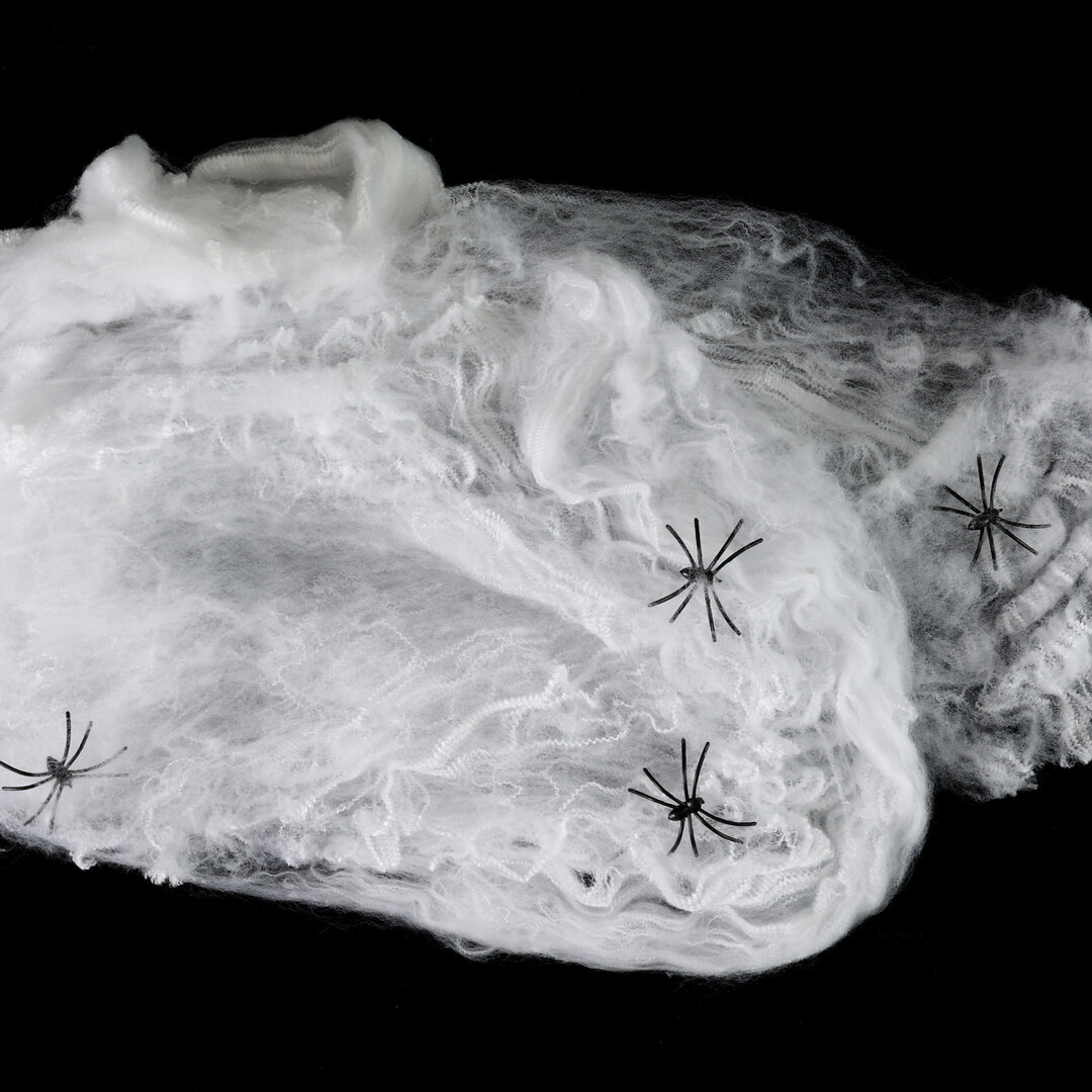 Senzační dekorace na Halloween párty! V balení najdeš 4 plastové pavoučky a pavučinu. Pavučina se dá jednoduše rozložit a pověsit kamkoliv budeš chtít.
