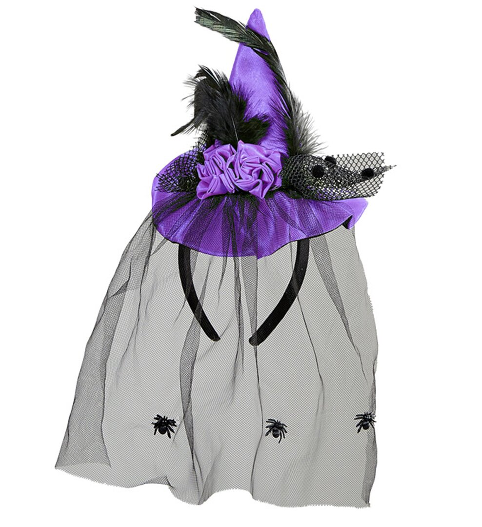 Dodej svému čarodějnickému kostýmu nádech elegance a tajemna! Tento fialový mini klobouček ozdobený růžemi, černým peřím a jemným tylem s motivem pavučiny je perfektním doplňkem na Halloween, tematické večírky i karneval. Díky praktické sponce dobře drží ve vlasech a stylově doplní každý outfit malé i velké čarodějky.