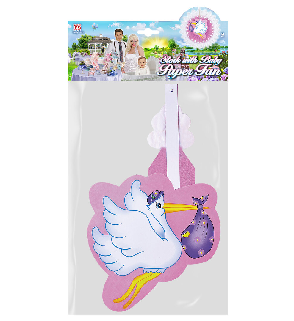 Papírová rozeta s čápem, růžová (50 cm) Papírová rozeta s čápem, růžová (50 cm)