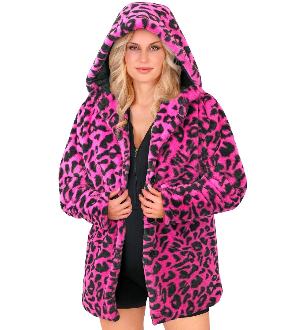 Plyšový kabát s kapucí, neonově růžový