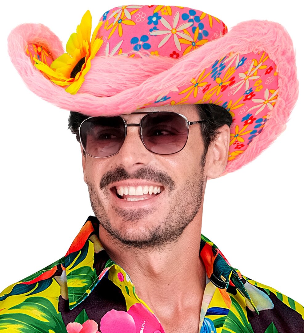 Růžový klobouk Ibiza se slunečnicí Růžový klobouk Ibiza se slunečnicí