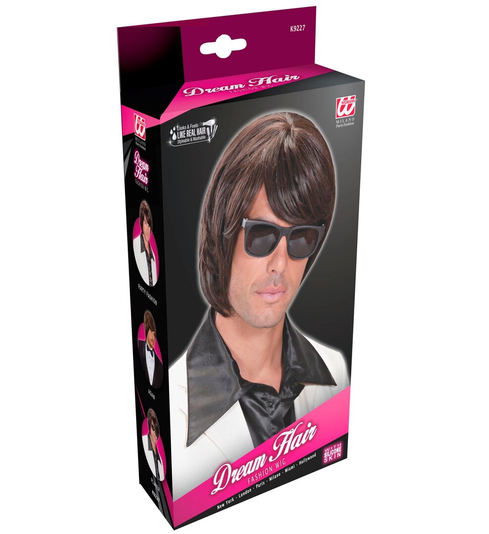 Kvalitní pánská paruka s charakteristickým retro střihem ze 70. let v hnědé barvě.
