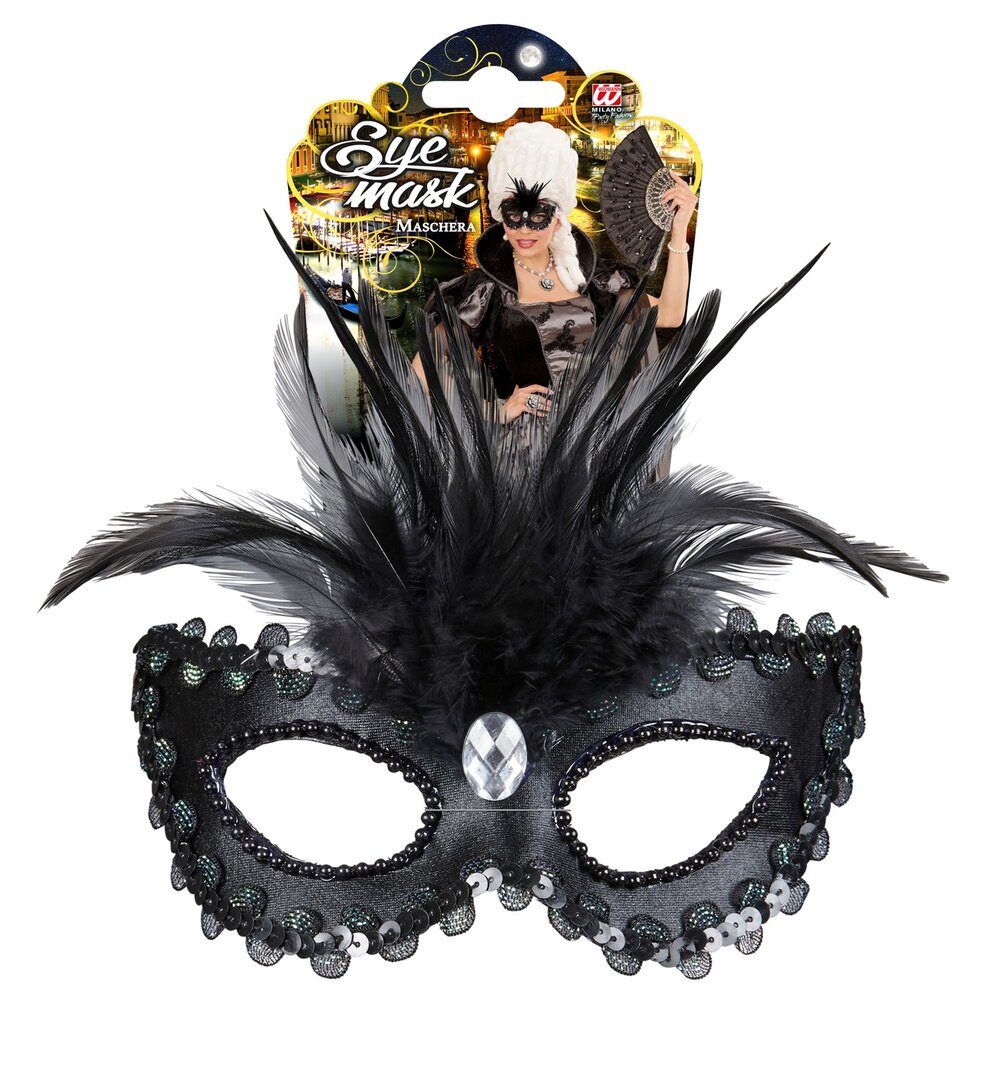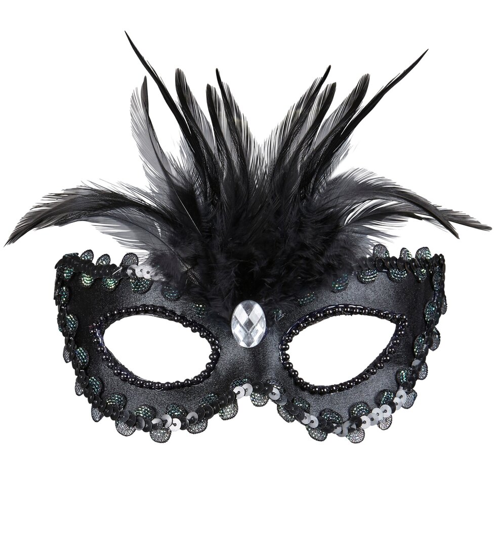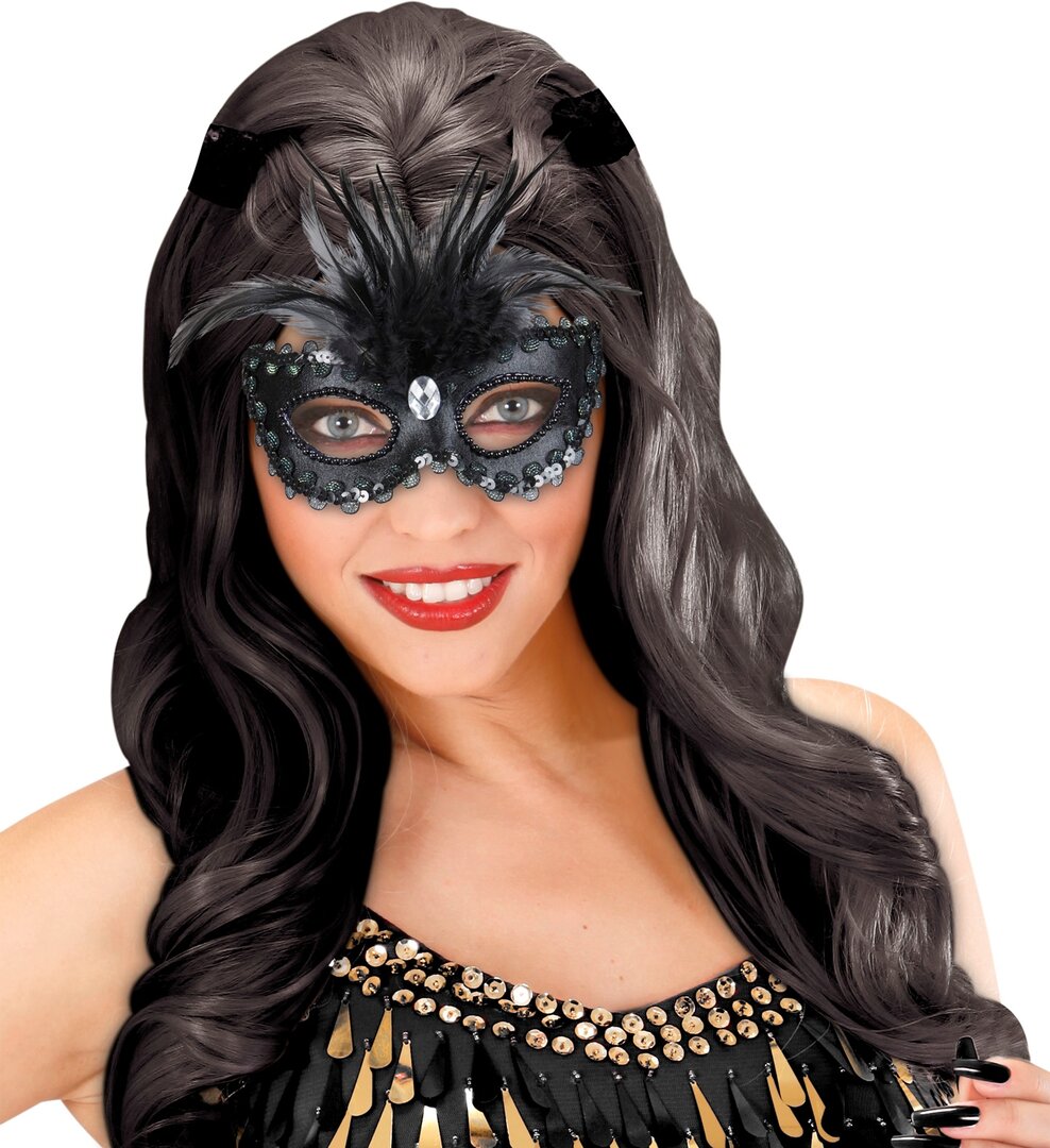 Dámská lesklá škraboška s peřím a drahokamem Dámská lesklá škraboška s peřím a drahokamem