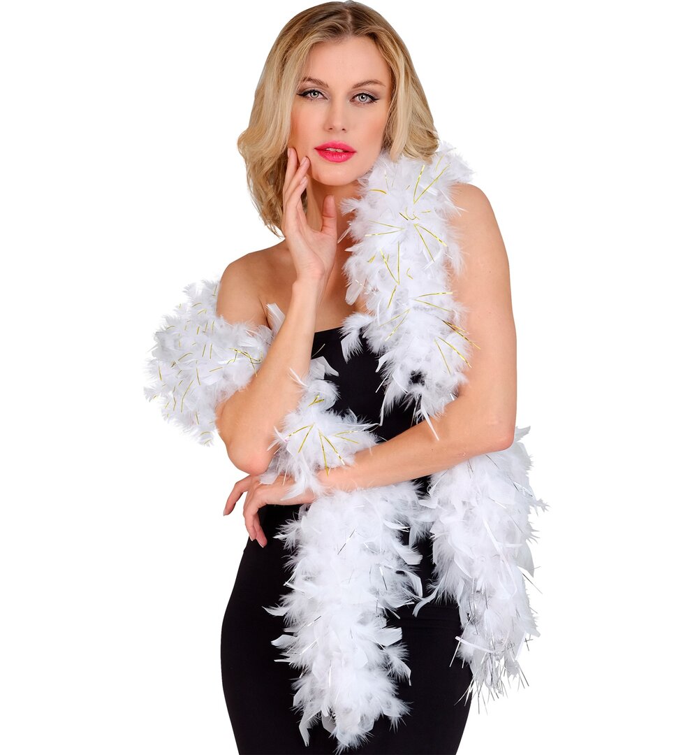 Péřové boa, bílozlaté, délka 1,80 m (50g) Péřové boa, bílozlaté, délka 1,80 m (50g)