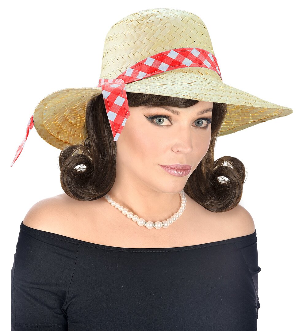 Dámský slaměný klobouk, s červenou stuhou Dámský slaměný klobouk, s červenou stuhou