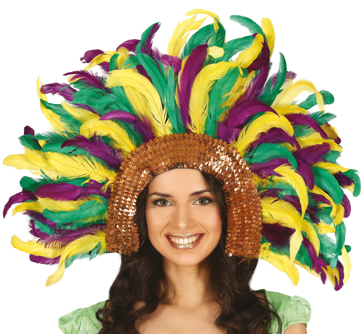 Brazilská čelenka s peřím, vícebarevná Brazilská čelenka s peřím, vícebarevná