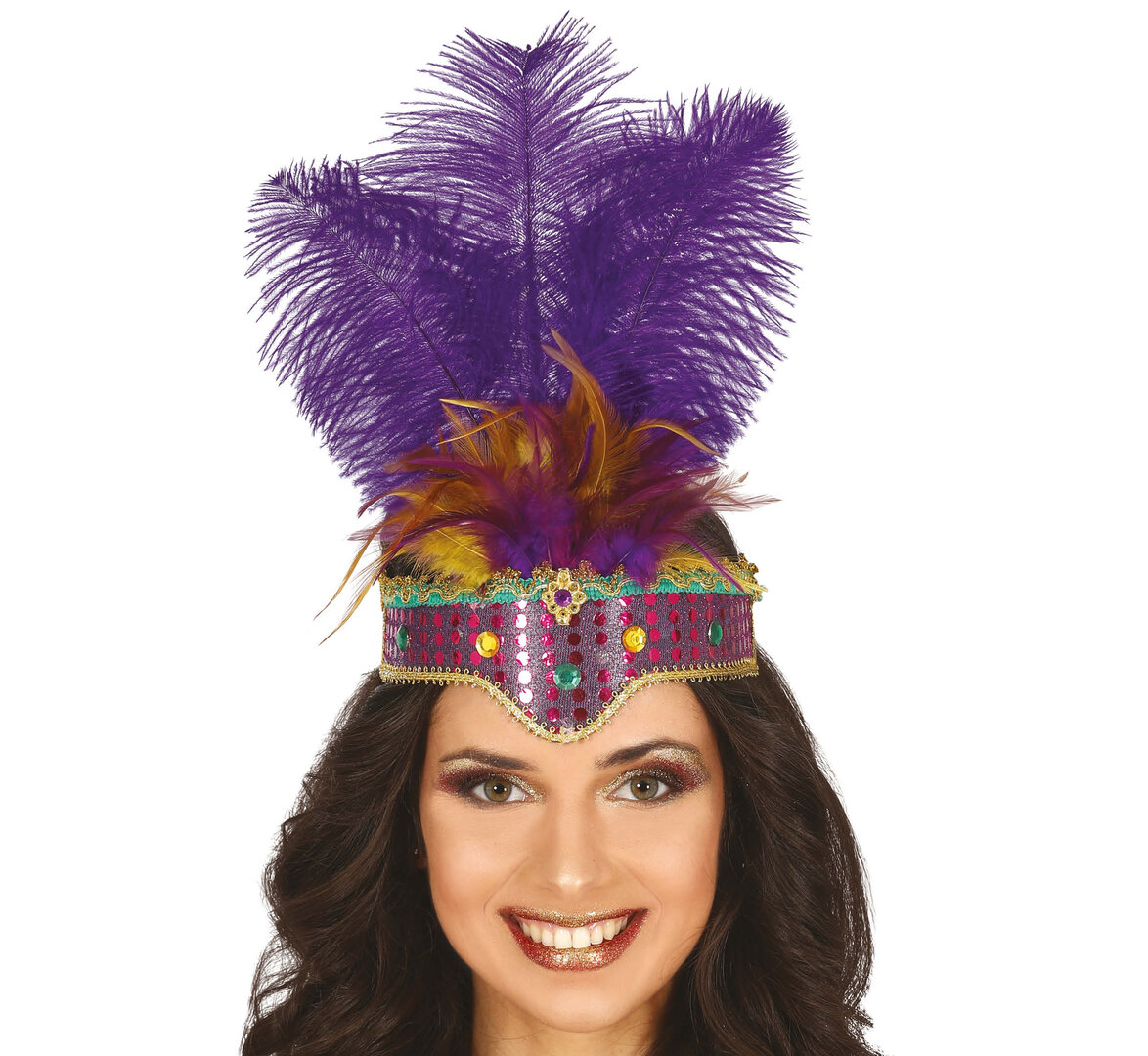 Dámská karnevalová čelenka s peřím, fialová Dámská karnevalová čelenka s peřím, fialová