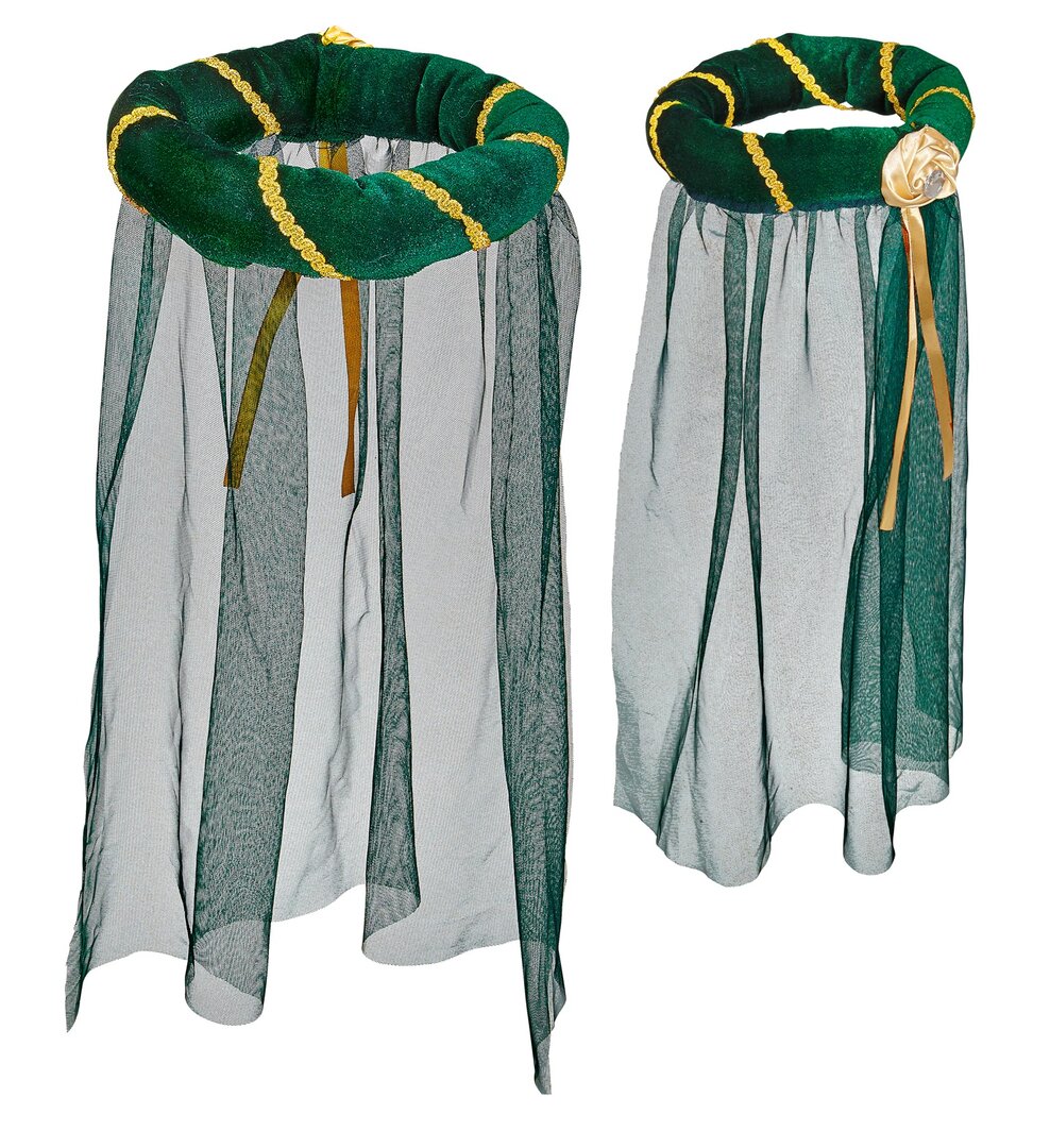 Dámská středověká zelená pokrývka hlavy se závojem Dámská středověká zelená pokrývka hlavy se závojem