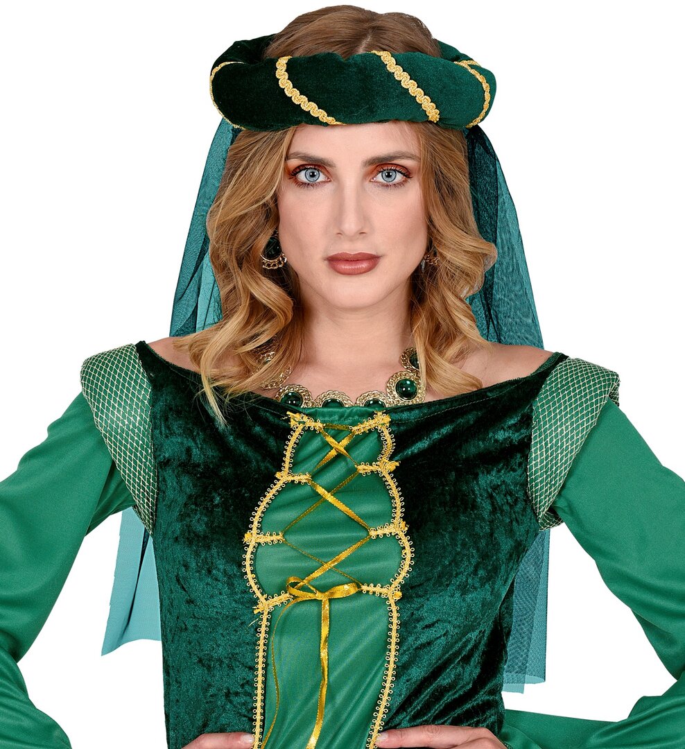 Dámská středověká zelená čelenka se závojem Dámská středověká zelená čelenka se závojem