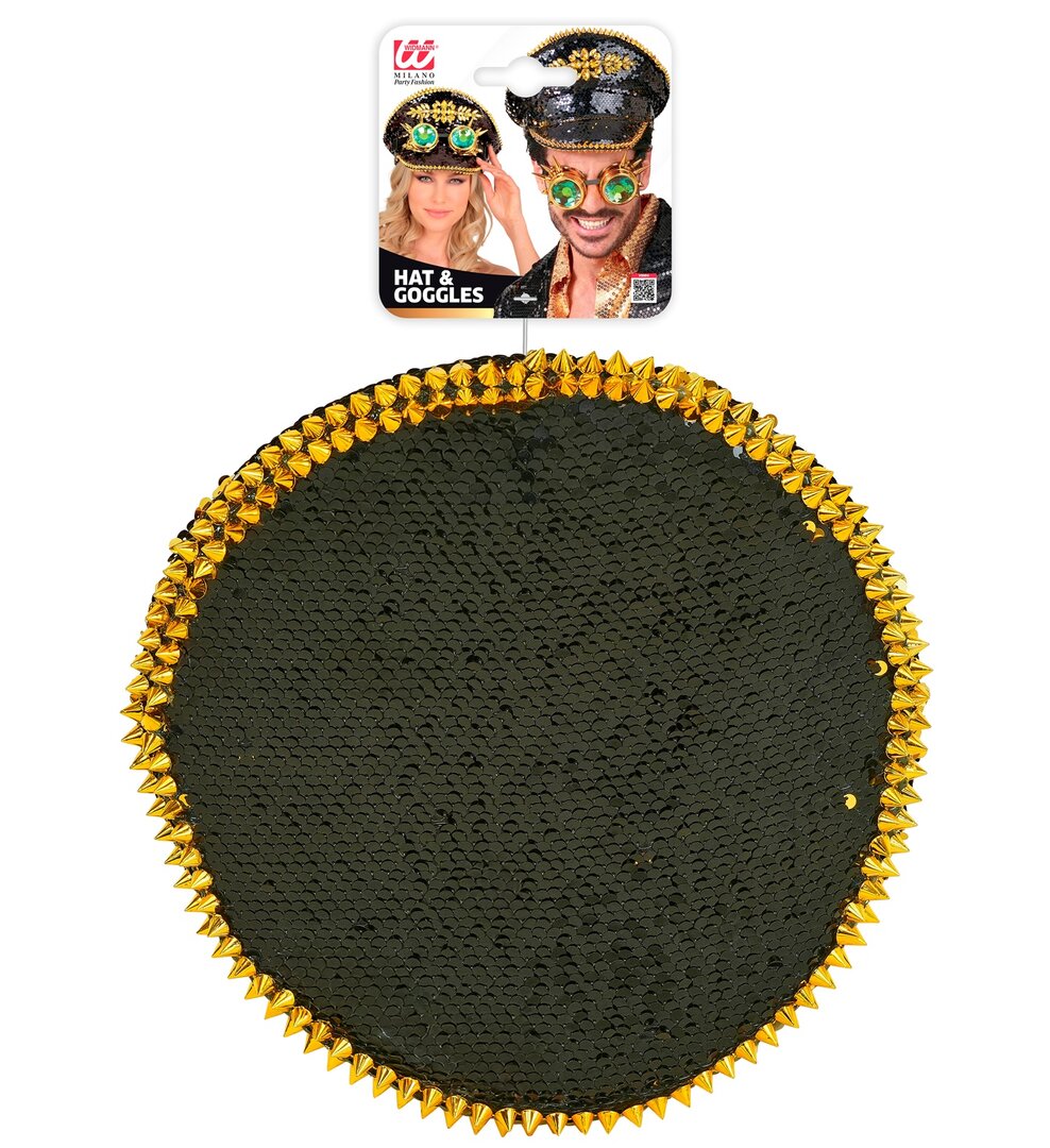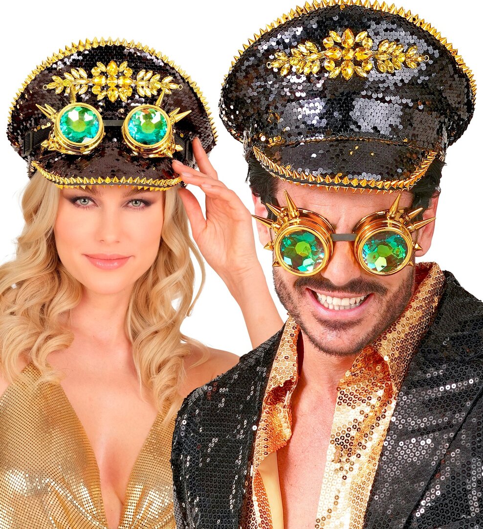 Černozlatá kapitánská čepice s brýlemi, steampunk