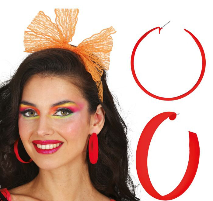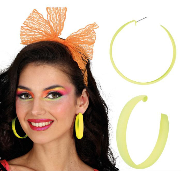 Neonové kruhové náušnice, 80. léta Neonové kruhové náušnice, 80. léta
