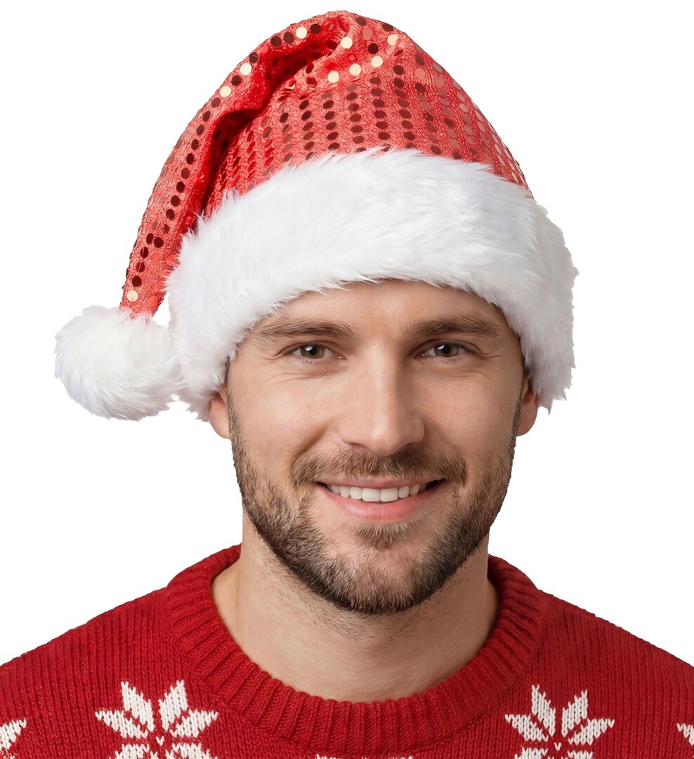 Flitrovaná čepice Santa, červená Flitrovaná čepice Santa, červená