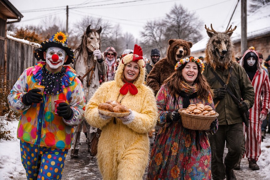 Masopust je chvíle, kdy se vesnice i města na okamžik promění. V ulicích se objevují masky, hraje hudba, někde se tančí, jinde se jen směje a přihlíží. Jí se věci, které si jindy odpíráme, pije se, zpívá a svět působí trochu lehčeji než obvykle. Masopust dává lidem prostor vypnout, potkat se a být spolu jinak než ve všední den.
