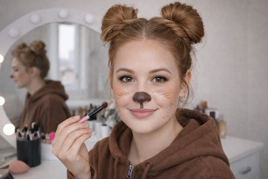 Pokud se nechcete pouštět do práce s kožešinami ani do výroby masky, existuje i velmi jednoduchá varianta. Stačí hnědé oblečení a medvědí uši. Ty lze vyrobit z filcu nebo plsti, našít na čepici nebo připevnit na čelenku. Uši mohou být jen naznačené, důležitý je celkový dojem. Tahle varianta se hodí pro děti, nenáročné akce nebo situace, kde má převlek spíš symbolickou roli.