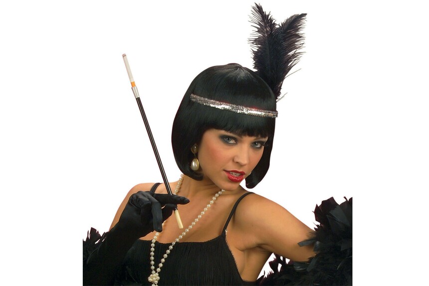 Typickým doplňkem může být i špička na cigaretu. Není nezbytná, ale pokud ji použijete, okamžitě odkazuje na estetiku dvacátých let a prostředí jazzových klubů. Zároveň dává kostýmu další čitelnou vrstvu, která funguje i bez znalosti historického kontextu.